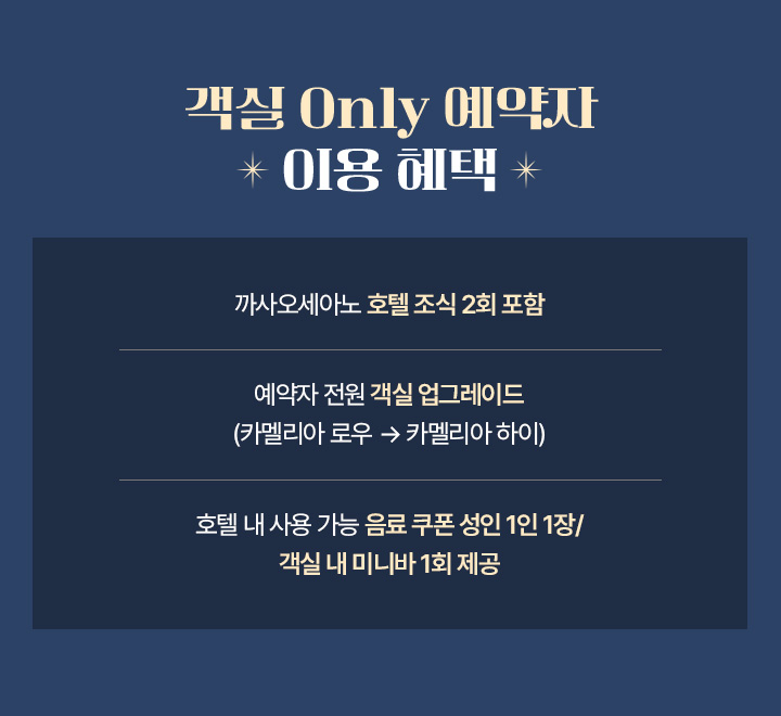 예약자 전원 객실 업그레이드 (카멜리아 로우 → 카멜리아 하이)
